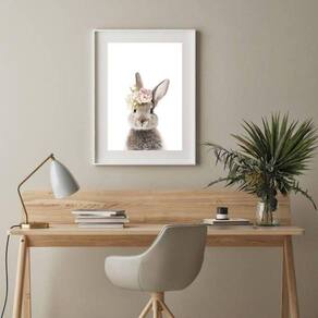 Quadro coelhinha floral - 60x48cm Moldura: madeira branca Informações do produto tire todas as suas dúvidas no descritivo abaixo: decoração para quarto, sala, cozinha, escritório, área gourmet e muito mais. Chega de paredes vazias medidas - cada peça tem 60x48cm . Material do papel - papel fotográfico brilhante de altíssima resolução acabamento - todos os quadros são acompanhados de vidro para proteção da imagem. - moldura em madeira maciça na cor preta ou branca conforme produto escolhido e pendurador. - paspatur branco com 7cm de largura - os quadros são embalados de forma segura com plástico bolha com camada dupla de acordo com o tamanho dos quadros. Garantia - garantia de 3 meses. Meu quadro chegou. Como posso fixá-lo Você precisa apenas de um martelo e um prego, pois os quadros já vão acompanhados de penduradores. Esta é a forma mais indicada. Como posso limpar meu quadro A limpeza é feita como um móvel comum da sua casa. Apenas um pano seco ou espanador são suficientes para tal