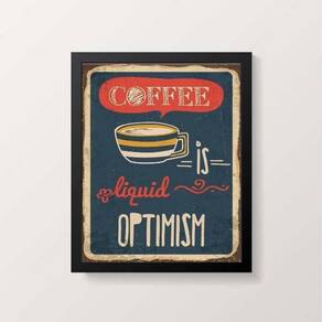 Quadro coffee is liquid optimism 45x34cm - com vidro Moldura: madeira preta Informações do produto tire todas as suas dúvidas no descritivo abaixo: decoração para quarto, sala, cozinha, escritório, área gourmet e muito mais. Chega de paredes vazias medidas - cada peça tem 45x34cm a3 . Material do papel - papel fotográfico brilhante de altíssima resolução acabamento - todos os quadros são acompanhados de vidro para proteção da imagem. - moldura em madeira maciça na cor preta e pendurador . - os quadros são embalados de forma segura com plástico bolha com camada dupla de acordo com o tamanho dos quadros. Garantia - garantia de 3 meses. Meu quadro chegou. Como posso fixá-lo Você precisa apenas de um martelo e um prego, pois os quadros já vão acompanhados de penduradores. Esta é a forma mais indicada. Como posso limpar meu quadro A limpeza é feita como um móvel comum da sua casa. Apenas um pano seco ou espanador são suficientes para tal