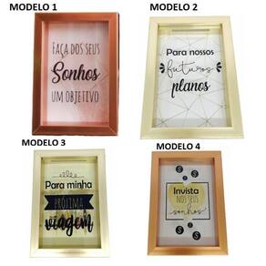 Uma maneira diferente de planejar sonhos, viagens e alcançar seus objetivos. Economizar será divertido com o quaro cofre, vc pode pendurar na parede, pode colocar sobre uma penteadeira, escrivaninha, pode alterar a imagem do fundo colocando uma foto pessoal ou do objetivo tipo: Viagem, formatura, casamento...