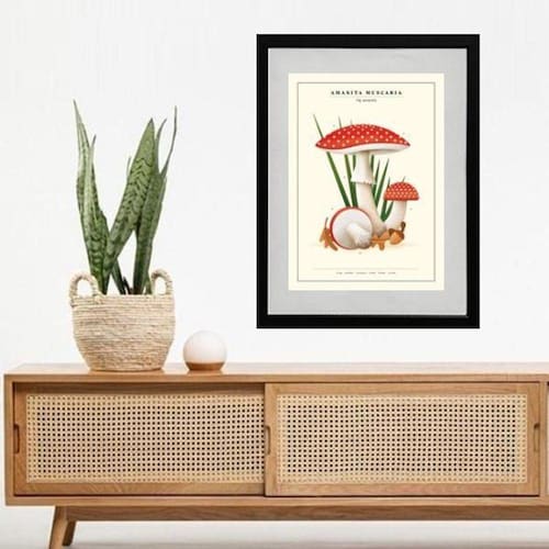 Quadro cogumelos vermelho poá - 60x48cm Moldura: madeira preta Informações do produto tire todas as suas dúvidas no descritivo abaixo: decoração para quarto, sala, cozinha, escritório, área gourmet e muito mais. Chega de paredes vazias medidas - cada peça tem 60x48cm . Material do papel - papel fotográfico brilhante de altíssima resolução acabamento - todos os quadros são acompanhados de vidro para proteção da imagem. - moldura em madeira maciça na cor preta ou branca conforme produto escolhido e pendurador. - paspatur branco com 7cm de largura - os quadros são embalados de forma segura com plástico bolha com camada dupla de acordo com o tamanho dos quadros. Garantia - garantia de 3 meses. Meu quadro chegou. Como posso fixá-lo Você precisa apenas de um martelo e um prego, pois os quadros já vão acompanhados de penduradores. Esta é a forma mais indicada. Como posso limpar meu quadro A limpeza é feita como um móvel comum da sua casa. Apenas um pano seco ou espanador são suficientes para tal