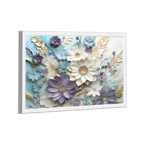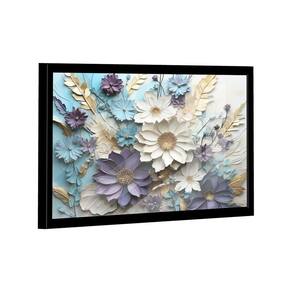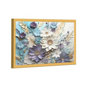 Quadro Colagem de Flores -- BR ARTES Moldura Branca e Vidro - Médio 84x54 -