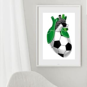 Quadro coração de futebol - 60x48cm Moldura: madeira preta Informações do produto tire todas as suas dúvidas no descritivo abaixo: decoração para quarto, sala, cozinha, escritório, área gourmet e muito mais. Chega de paredes vazias medidas - cada peça tem 60x48cm . Material do papel - papel fotográfico brilhante de altíssima resolução acabamento - todos os quadros são acompanhados de vidro para proteção da imagem. - moldura em madeira maciça na cor preta ou branca conforme produto escolhido e pendurador. - paspatur branco com 7cm de largura - os quadros são embalados de forma segura com plástico bolha com camada dupla de acordo com o tamanho dos quadros. Garantia - garantia de 3 meses. Meu quadro chegou. Como posso fixá-lo Você precisa apenas de um martelo e um prego, pois os quadros já vão acompanhados de penduradores. Esta é a forma mais indicada. Como posso limpar meu quadro A limpeza é feita como um móvel comum da sua casa. Apenas um pano seco ou espanador são suficientes para tal