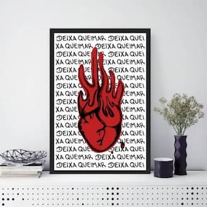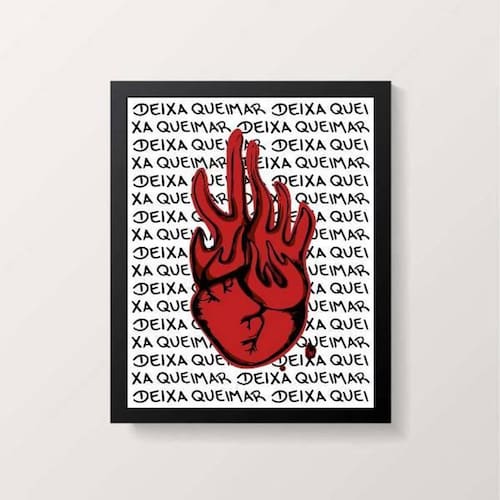 Quadro coração em chamas deixa queimar 45x34cm - com vidro Moldura: madeira preta Informações do produto tire todas as suas dúvidas no descritivo abaixo: decoração para quarto, sala, cozinha, escritório, área gourmet e muito mais. Chega de paredes vazias medidas - cada peça tem 45x34cm a3 . Material do papel - papel fotográfico brilhante de altíssima resolução acabamento - todos os quadros são acompanhados de vidro para proteção da imagem. - moldura em madeira maciça na cor preta e pendurador . - os quadros são embalados de forma segura com plástico bolha com camada dupla de acordo com o tamanho dos quadros. - de 3 meses. Meu quadro chegou. Como posso fixá-lo Você precisa apenas de um martelo e um prego, pois os quadros já vão acompanhados de penduradores. Esta é a forma mais indicada. Como posso limpar meu quadro A limpeza é feita como um móvel comum da sua casa. Apenas um pano seco ou espanador são suficientes para tal Marca: Não Informado
