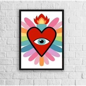 Procurando um quadro decorativo para dar um toque especial em sua casa? Apresentamos o Quadro Decorativo Coração Com Olho 33X24Cm!