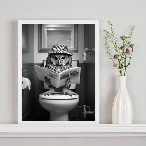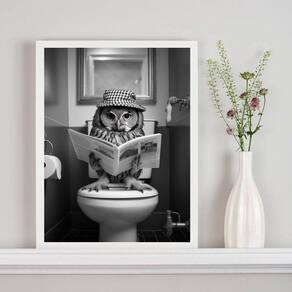 Quadro coruja no banheiro lendo jornal 45x34cm Moldura: madeira preta Informações do produto tire todas as suas dúvidas no descritivo abaixo: decoração para quarto, sala, cozinha, escritório, área gourmet e muito mais. Chega de paredes vazias. Medidas - cada peça tem 45x34cm a3 . Material do papel - papel fotográfico brilhante de altíssima resolução acabamento - todos os quadros são acompanhados de uma película de acetato para proteção da imagem. - os quadros são embalados de forma segura com plástico bolha com camada dupla de acordo com o tamanho dos quadros. Garantia - garantia de 3 meses. Meu quadro chegou. Como posso fixá-lo Você precisa apenas de um martelo e um prego, pois os quadros já vão acompanhados de penduradores. Esta é a forma mais indicada. Caso prefira, você pode utilizar uma fita dupla face neste caso, sugerimos de alta qualidade para evitar que descole e seu quadro caia . Como posso limpar meu quadro A limpeza é feita como um móvel comum da sua casa. Apenas um pano seco ou espanador são suficientes para tal