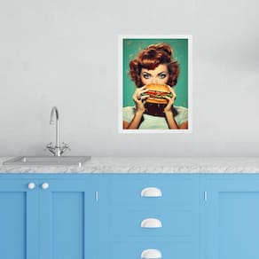Quadro cozinha retro pin up hamburger 24x18cm - com vidro Cor: moldura preta Informações do produto tire todas as suas dúvidas no descritivo abaixo: decoração para quarto, sala, cozinha, escritório, área gourmet e muito mais. Chega de paredes vazias medidas - cada peça tem 24x18cm a5 . Material do papel - papel fotográfico brilhante de altíssima resolução acabamento - todos os quadros são acompanhados de vidro para proteção da imagem. - moldura em madeira maciça na cor preta ou branca conforme produto escolhido e pendurador . - os quadros são embalados de forma segura com plástico bolha com camada dupla de acordo com o tamanho dos quadros. - de 3 meses. Meu quadro chegou. Como posso fixá-lo Você precisa apenas de um martelo e um prego, pois os quadros já vão acompanhados de penduradores. Esta é a forma mais indicada. Como posso limpar meu quadro A limpeza é feita como um móvel comum da sua casa. Apenas um pano seco ou espanador são suficientes para tal