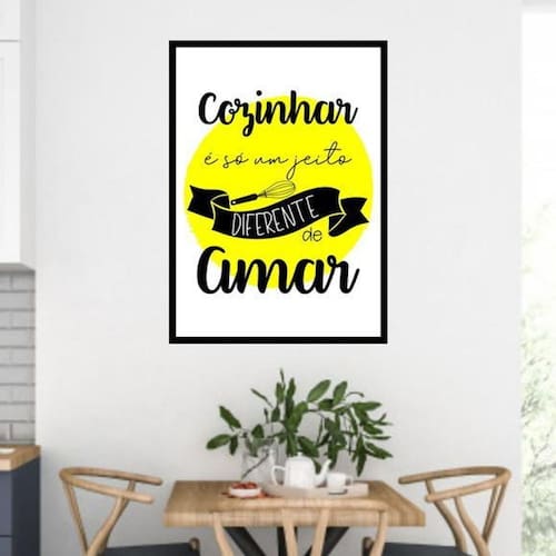 Quadro cozinhar: um jeito diferente de amar 33x24cm - com vidro Moldura: madeira branca Informações do produto tire todas as suas dúvidas no descritivo abaixo: decoração para quarto, sala, cozinha, escritório, área gourmet e muito mais. Chega de paredes vazias medidas - cada peça tem 33x24cm a4 . Material do papel - papel fotográfico brilhante de altíssima resolução acabamento - todos os quadros são acompanhados de vidro para proteção da imagem. - moldura em madeira maciça na cor preta e pendurador . - os quadros são embalados de forma segura com plástico bolha com camada dupla de acordo com o tamanho dos quadros. - de 3 meses. Meu quadro chegou. Como posso fixá-lo Você precisa apenas de um martelo e um prego, pois os quadros já vão acompanhados de penduradores. Esta é a forma mais indicada. Como posso limpar meu quadro A limpeza é feita como um móvel comum da sua casa. Apenas um pano seco ou espanador são suficientes para tal Ean: 7895142242837