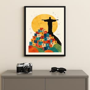 Quadro Cristo Rio de Janeiro Favela 33x24cm Mold Preta