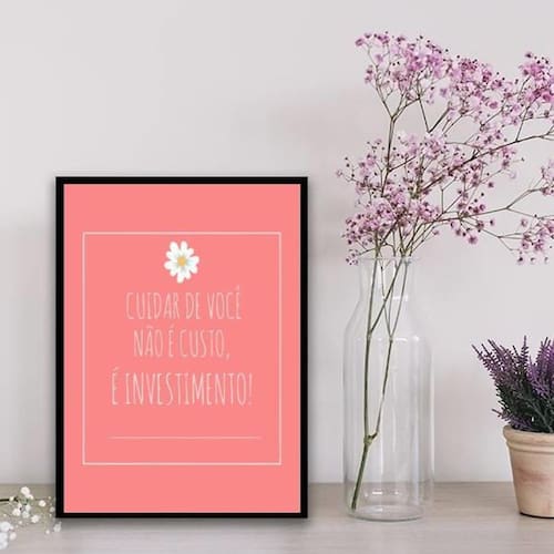 Quadro cuidar de você é investimento 45x34cm Moldura: madeira preta Informações do produto Decoração para quarto, sala, cozinha, escritório, área gourmet e muito mais. Chega de paredes vazias Medidas - cada peça tem 45x34cm a3 . Material do papel - papel fotográfico brilhante de altíssima resolução Acabamento - todos os quadros são acompanhados de uma película de acetato para proteção da imagem. - os quadros são embalados de forma segura com plástico bolha com camada dupla de acordo com o tamanho dos quadros. - de 3 meses. Meu quadro chegou. Como posso fixá-lo Você precisa apenas de um martelo e um prego, pois os quadros já vão acompanhados de penduradores. Esta é a forma mais indicada. Caso prefira, você pode utilizar uma fita dupla face neste caso, sugerimos de alta qualidade para evitar que descole e seu quadro caia . Como posso limpar meu quadro A limpeza é feita como um móvel comum da sua casa. Apenas um pano seco ou espanador são suficientes para tal Marca: Não Informado Ean: 7898362504273