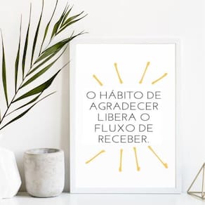 O Quadro O Hábito Agradecer Libera O Fluxo Receber é perfeito para quem busca uma decoração encantadora e inspiradora para o quarto, sala, cozinha, escritório, área gourmet e muito mais. Com medidas de 24x18cm A5 , esse quadro é produzido com materiais de alta qualidade para garantir durabilidade e beleza em sua parede. A moldura é feita em madeira branca, conferindo um visual elegante e moderno ao ambiente. Além disso, o quadro acompanha vidro para proteção da imagem, garantindo que ela se mantenha sempre bonita e intacta. A limpeza do quadro é muito fácil, basta utilizar um pano seco ou um espanador para remover o pó. Assim, você poderá mantê-lo sempre impecável e com aspecto de novo. Ao receber o seu quadro, você terá facilidade em fixá-lo na parede, pois ele já vem acompanhado de penduradores. Basta utilizar um martelo e um prego para garantir que ele fique bem posicionado e seguro. Esse quadro é perfeito para quem acredita no poder da gratidão e deseja atrair boas energias para a sua vida. Ele serve como um lembrete diário para você cultivar o hábito de agradecer, o que pode liberar o fluxo de receber coisas positivas em sua vida. Com de 3 meses, você poderá adquirir o Quadro O Hábito Agradecer Libera O Fluxo Receber com tranquilidade, sabendo que estará investindo em um produto de qualidade. Não deixe suas paredes vazias! Adquira agora mesmo o Quadro O Hábito Agradecer Libera O Fluxo Receber e transforme a decoração de sua casa com estilo e inspiração. Marca: Não Informado