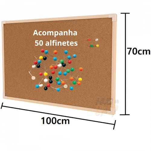 Observações: - Não acompanha parafusos. - Para uso de alfinete tipo taça, para quadro de cortiça. - Acompanha 50 Alfinetes.