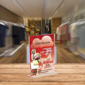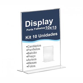 Fixação por fita dupla face. já acompanha tamanho: 10 x 15cm Modelo: retrato Material: ps cristal Quantidade de produtos nesse kit: -10 unidades. O que você pode expor nesse display: - identificador de mesa - cardápio - fotos. - papel e folha em geral. - aviso. - propaganda. - lembrete. - comunicação interna e externa na empresa. - qualquer tipo de divulgação que você queira expor. Características: - peça fabricada com corte a laser. - não amarela com o tempo. - excelente resistência e durabilidade. Capacidade: 1 folha ou papel