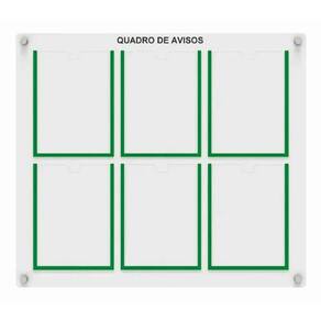 Quadro De Aviso E Gestão 6 Displays A4 De Acrílico Verde