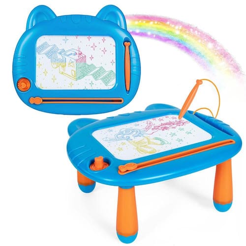 Prancheta magnética atualizada para bebês e crianças: a prancheta de doodle tem 4 pernas removíveis que podem oferecer três configurações diferentes para maior flexibilidade no desenho, os brinquedos perfeitos de 18 meses para meninos. Seja plano, oblíquo ou vertical, o bloco de desenho permite que eles escolham a forma mais confortável para o desenho. O design aparaf e as pernas robustas conferem à prancheta magnética para crianças uma forte capacidade de carga de até 120 libras e também são brinquedos seguros para os meninos usarem como um assento pequeno