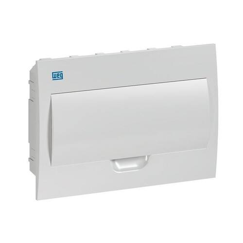 Quadro de Distribuição QDW02-12-BE WEG Embutir de 12 Disjuntores A linha de Quadros de Distribuição QDW, traz a seu lar a qualidade, confiabilidade e tradição da marca WEG, já reconhecidas nas instalações elétricas industrias. É produzida em material plástico e dimensionada para instalação de 12 módulos de disjuntores padrão DIN. Acabamentos de porta na versão branca. Flexibilidade Produzidos em material plástico, os quadros de distribuição QDW dimensionados para instalação de 12 módulos de disjuntores padrão DIN e com acabamentos de porta na versão branca. Principais características - Instalação de 12 módulos de disjuntores; - Acabamento da tampa branco; - Barramentos para conexão e distribuição acessórios opcionais não inclusos ; - Barramentos de Neutro e Terra Acessórios opcionais não inclusos . Código: 11377479 Especificações Técnicas: - Modelo: QDW02-12-BE - Marca: WEG - Quantidade de disjuntores no quadro: Até 12 monopolares não inclusos - Cor da tampa: Branca - Forma de instalação: De embutir, com tampa - Material da tampa: Plástico - Material Base: Plástico - Componente principal do quadro: Minidisjuntores - Medidas externas aproximadas ; 28 x 22,5 x 9 cm - Medidas da caixa de embutir aproximadas : 25,6 x 19,9 x 6,5 cm Marca: Não Informado Ean: 7894171981724