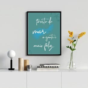 O Quadro Perto Do Mar A Gente É Mais Feliz é perfeito para decorar o seu quarto, sala, cozinha, escritório, área gourmet e muito mais. Com medidas de 33x24cm A4 , ele possui uma linda moldura de madeira branca que traz um toque de elegância para qualquer ambiente.