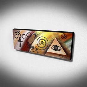 Observações: Neste quadro foi representado pelo olho que tudo vê e olho de hórus, que representa o olho divino de deus hórus: as energias solar e lunar - proteção espiritual. Há também representação do deus maior e o infinito. A cruz ansata, que representa a vida e ato de viver, e o espiral, que é a essência do mistério da vida.