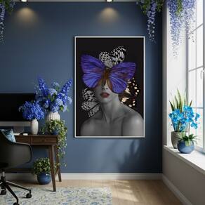 Quadro Decor Efeito Borboleta 70x50cm Mold Preta
