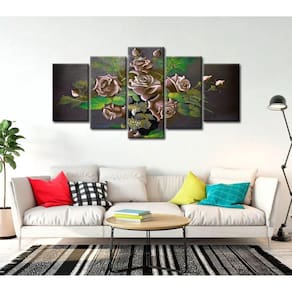 Quadro Decorativo 129x63 Sala Flores Rosas Marrons 1