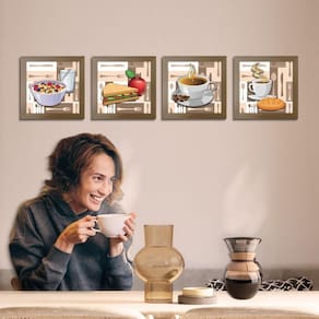 Quadro Decorativo Cozinha Café Manhã Padaria 20x20cm Kit 4 un