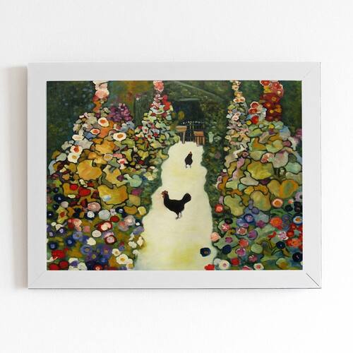 Quadro Jardim Galinhas Gustav Klimt Moldura Branca 60x40cm