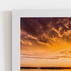 Pôr Do Sol Paisagem Mar Nuvens Quadro Moldura Branca 60X40Cm