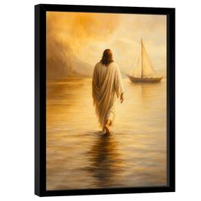 Quadro Decorativo A Caminhada de Jesus Moldura Dourada e Vidro - 118x78cm -