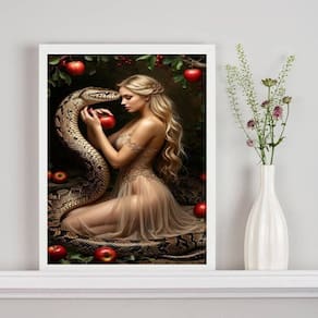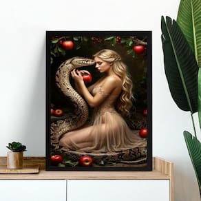 Quadro decorativo a tentação - mulher maçã serpente 33x24cm - com vidro Cor: moldura preta Informações do produto tire todas as suas dúvidas no descritivo abaixo: decoração para quarto, sala, cozinha, escritório, área gourmet e muito mais. Chega de paredes vazias medidas - cada peça tem 33x24cm a4 . Material do papel - papel fotográfico brilhante de altíssima resolução acabamento - todos os quadros são acompanhados de vidro para proteção da imagem. - moldura em madeira maciça na cor preta ou branca conforme produto escolhido e pendurador . - os quadros são embalados de forma segura com plástico bolha com camada dupla de acordo com o tamanho dos quadros. - de 3 meses. Meu quadro chegou. Como posso fixá-lo Você precisa apenas de um martelo e um prego, pois os quadros já vão acompanhados de penduradores. Esta é a forma mais indicada. Como posso limpar meu quadro A limpeza é feita como um móvel comum da sua casa. Apenas um pano seco ou espanador são suficientes para tal Marca: Não Informado Ean: 7901039750641
