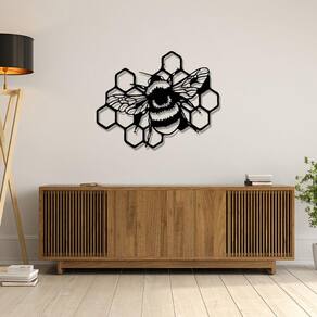 Especificações Técnicas: Medidas: comprimento: 59 cm altura: 3mm largura: 39 cm Material: mdf 3mm Cor: preto Tema: abelha Formas de instalação: basta utilizar fitas dupla face Quantidade: 1 unidade