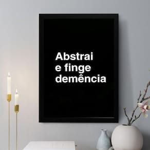Quadro decorativo abstrai e finge demência 33x24cm Cor: moldura branca Informações do produto tire todas as suas dúvidas no descritivo abaixo: decoração para quarto, sala, cozinha, escritório, área gourmet e muito mais. Chega de paredes vazias medidas - cada peça tem 33x24cm a4 . Material do papel - papel fotográfico brilhante de altíssima resolução acabamento - todos os quadros são acompanhados de uma película de acetato para proteção da imagem. - os quadros são embalados de forma segura com plástico bolha com camada dupla de acordo com o tamanho dos quadros. Garantia - garantia de 3 meses. Meu quadro chegou. Como posso fixá-lo Você precisa apenas de um martelo e um prego, pois os quadros já vão acompanhados de penduradores. Esta é a forma mais indicada. Caso prefira, você pode utilizar uma fita dupla face neste caso, sugerimos de alta qualidade para evitar que descole e seu quadro caia . Como posso limpar meu quadro A limpeza é feita como um móvel comum da sua casa. Apenas um pano seco ou espanador são suficientes para tal