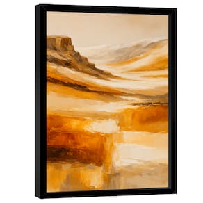 Quadro Decorativo Abstrato Área Deserta Moldura Branca e Vidro - 84x54cm -