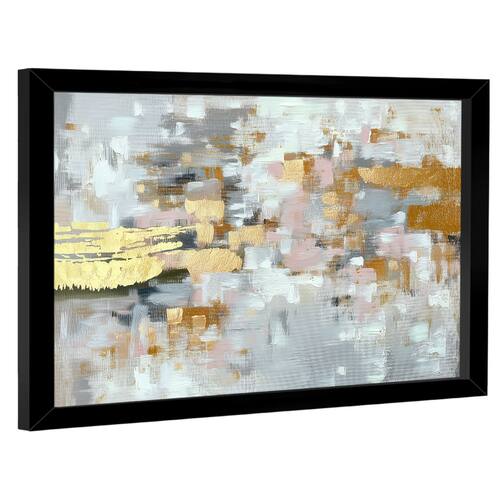 Quadro Decorativo Abstrato Contraste Dourado Moldura Preta - 84x54cm -
