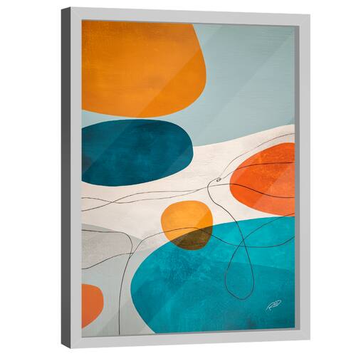 Quadro Decorativo Abstrato Cores Moldura Branca e Vidro - 60x40cm -