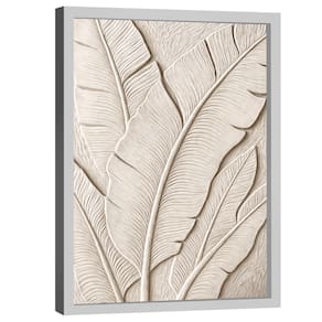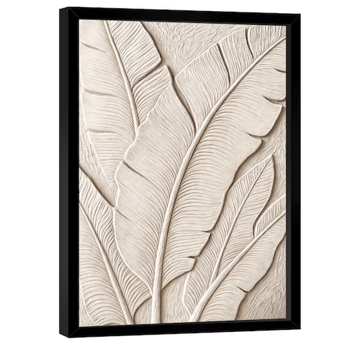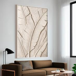 Quadro Decorativo Abstrato Folha Off-White Moldura Preta - 84x54cm -