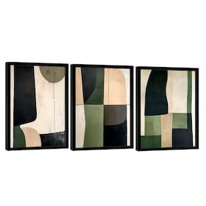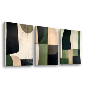 Quadro Decorativo Abstrato Geométrico Verde e Preto Moldura Preta - 84x54cm -