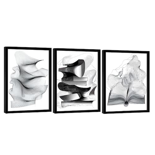 Quadro Decorativo Abstrato Ilustração Simples Moldura Preta - 118x78cm -