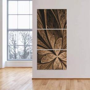 Quadro Decorativo Abstrato Marrom Flor Design Vertical Sala