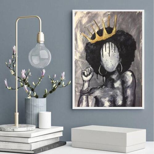 Quadro decorativo abstrato negra com coroa 24x18cm - com vidro Moldura: madeira branca Informações do produto tire todas as suas dúvidas no descritivo abaixo: decoração para quarto, sala, cozinha, escritório, área gourmet e muito mais. Chega de paredes vazias medidas - cada peça tem 24x18cm a5 . Material do papel - papel fotográfico brilhante de altíssima resolução acabamento - todos os quadros são acompanhados de vidro para proteção da imagem. - moldura em madeira maciça na cor preta ou branca conforme produto escolhido e pendurador . - os quadros são embalados de forma segura com plástico bolha com camada dupla de acordo com o tamanho dos quadros. Garantia - garantia de 3 meses. Meu quadro chegou. Como posso fixá-lo Você precisa apenas de um martelo e um prego, pois os quadros já vão acompanhados de penduradores. Esta é a forma mais indicada. Como posso limpar meu quadro A limpeza é feita como um móvel comum da sua casa. Apenas um pano seco ou espanador são suficientes para tal Ean: 7898912294579