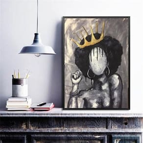 Quadro decorativo abstrato negra com coroa 33x24cm - com vidro Moldura: madeira preta Informações do produto tire todas as suas dúvidas no descritivo abaixo: decoração para quarto, sala, cozinha, escritório, área gourmet e muito mais. Chega de paredes vazias medidas - cada peça tem 33x24cm a4 . Material do papel - papel fotográfico brilhante de altíssima resolução acabamento - todos os quadros são acompanhados de vidro para proteção da imagem. - moldura em madeira maciça na cor preta ou branca conforme produto escolhido e pendurador . - os quadros são embalados de forma segura com plástico bolha com camada dupla de acordo com o tamanho dos quadros. Garantia - garantia de 3 meses. Meu quadro chegou. Como posso fixá-lo Você precisa apenas de um martelo e um prego, pois os quadros já vão acompanhados de penduradores. Esta é a forma mais indicada. Como posso limpar meu quadro A limpeza é feita como um móvel comum da sua casa. Apenas um pano seco ou espanador são suficientes para tal