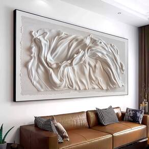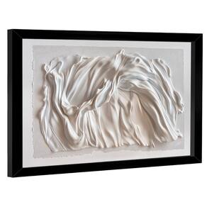Quadro Decorativo Abstrato Tecido Branco Moldura Branca - 180x105cm -