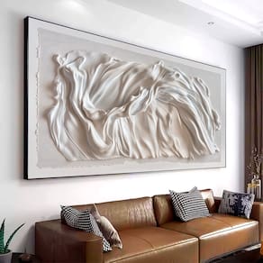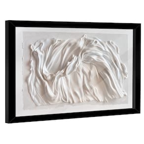 Quadro Decorativo Abstrato Tecido Branco Moldura Preta e Vidro - 118x78cm -
