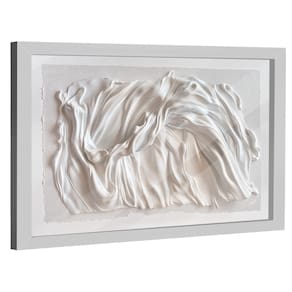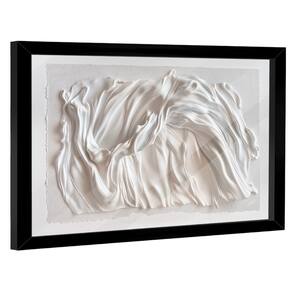 Quadro Decorativo Abstrato Tecido Branco Moldura Branca e Vidro - 180x105cm -