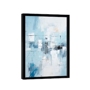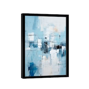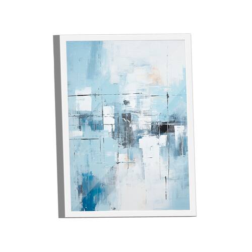 Quadro Decorativo Abstrato Tons Azul Cinza Moldura Branca e Vidro - Gigante 180x105 -