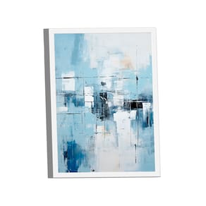 Quadro Decorativo Abstrato Tons Azul Cinza Moldura Preta e Vidro - Gigante 180x105 -