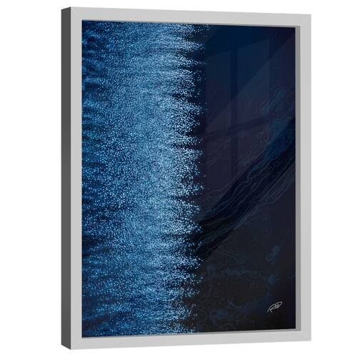 Quadro Decorativo Abstrato Tons de Azul Moldura Branca e Vidro - 84x54cm -