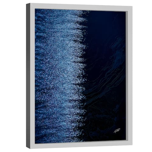 Quadro Decorativo Abstrato Tons de Azul Moldura Branca - 150x100cm -
