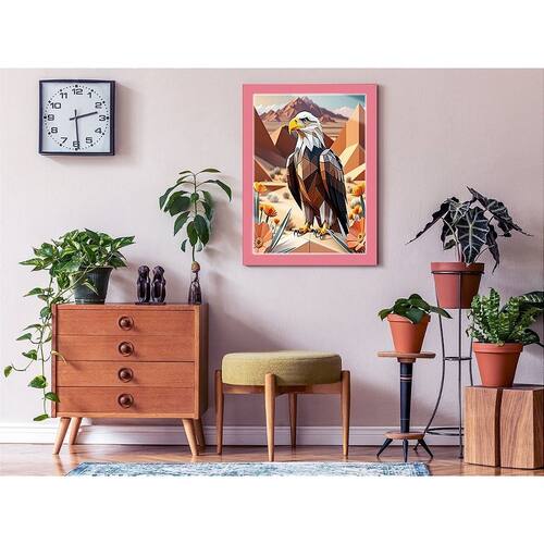 Quadro Decorativo Aguia Abstrata Sala Quarto +Vidro 33x25 A4 - Cor: Rosa