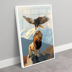 Quadro decorativo águia e leão - 70x50cm Cor: moldura branca Informações do produto tire todas as suas dúvidas no descritivo abaixo: decoração para quarto, sala, cozinha, escritório, área gourmet e muito mais. Chega de paredes vazias medidas - cada peça tem 70x50cm . Material do papel - papel fotográfico brilhante de altíssima resolução acabamento - todos os quadros são acompanhados de vidro para proteção da imagem. - moldura em madeira maciça na cor preta ou branca conforme produto escolhido e pendurador. - os quadros são embalados de forma segura com plástico bolha com camada dupla de acordo com o tamanho dos quadros. - de 3 meses. Meu quadro chegou. Como posso fixá-lo Você precisa apenas de um martelo e um prego, pois os quadros já vão acompanhados de penduradores. Esta é a forma mais indicada. Como posso limpar meu quadro A limpeza é feita como um móvel comum da sua casa. Apenas um pano seco ou espanador são suficientes para tal Marca: Não Informado