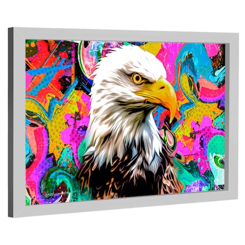 Quadro Decorativo Águia Pop Art Moldura Branca - 60x40cm -