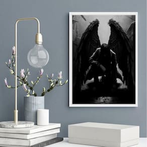 Quadro decorativo anjo negro 24x18cm - com vidro Moldura: madeira preta Informações do produto tire todas as suas dúvidas no descritivo abaixo: decoração para quarto, sala, cozinha, escritório, área gourmet e muito mais. Chega de paredes vazias medidas - cada peça tem 24x18cm a5 . Material do papel - papel fotográfico brilhante de altíssima resolução acabamento - todos os quadros são acompanhados de vidro para proteção da imagem. - moldura em madeira maciça na cor preta ou branca conforme produto escolhido e pendurador . - os quadros são embalados de forma segura com plástico bolha com camada dupla de acordo com o tamanho dos quadros. Garantia - garantia de 3 meses. Meu quadro chegou. Como posso fixá-lo Você precisa apenas de um martelo e um prego, pois os quadros já vão acompanhados de penduradores. Esta é a forma mais indicada. Como posso limpar meu quadro A limpeza é feita como um móvel comum da sua casa. Apenas um pano seco ou espanador são suficientes para tal